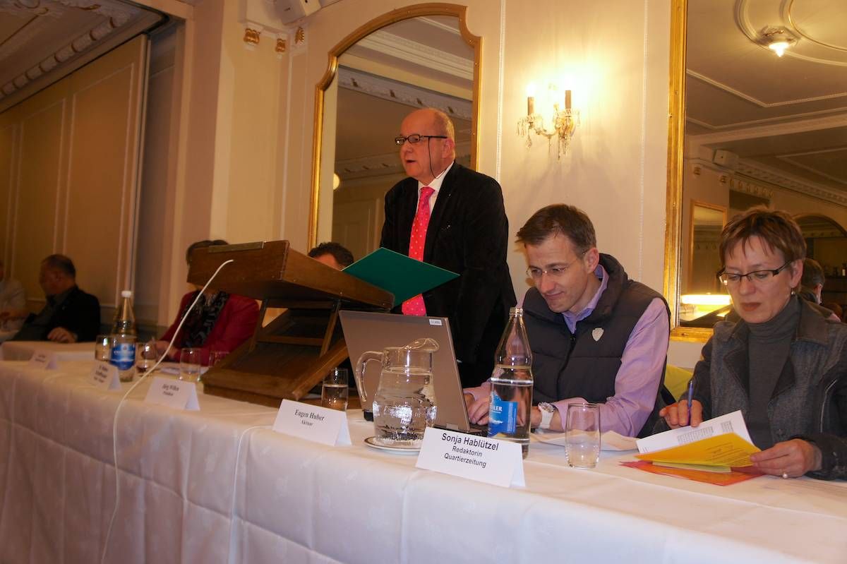 Nebst den statutarisch vorgeschriebenen Traktanden informierte Dr. Thomas Zumstein über die positive Entwicklung in der Kasse der IG Kronenbeleuchtung und Britta Allgöwer, Direktorin des Historischen Museums, wies die Anwesenden auf eine Reihe spannender Veranstaltungen und Ausstellungen hin. Die Grussbotschaft des Stadtrates überbrachte Ursula Stämmer-Horst. Nach einer Stunde schloss der Präsident den offiziellen Teil der Veranstaltung und leitete zum gemütlichen Teil über. Die 68 anwesenden Mitglieder genossen das feine Nachtessen im Hotel Wilden Mann und blieben noch lange im gemütlichen Saal sit